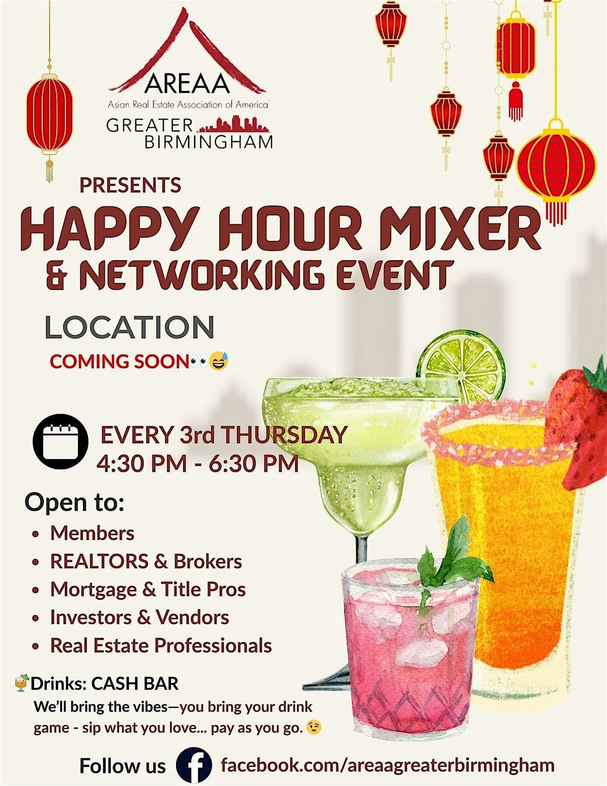 You're invited to an evening of connection and community with AREAA Greater Birmingham! Come join us on Thursday, April 16th for a relaxed Happy Hour Mixer & Networking Event.