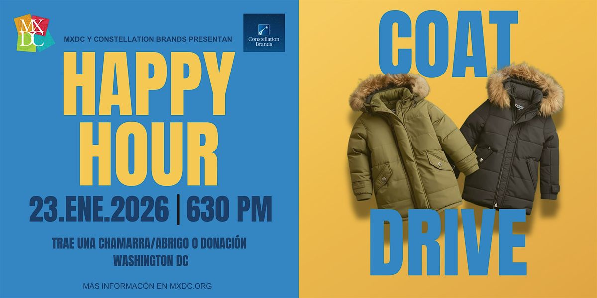¡Únete a nosotros para un Happy Hour especial dedicado a ayudar! Nos reuniremos para apoyar a nuestra comunidad durante los meses fríos del invierno.