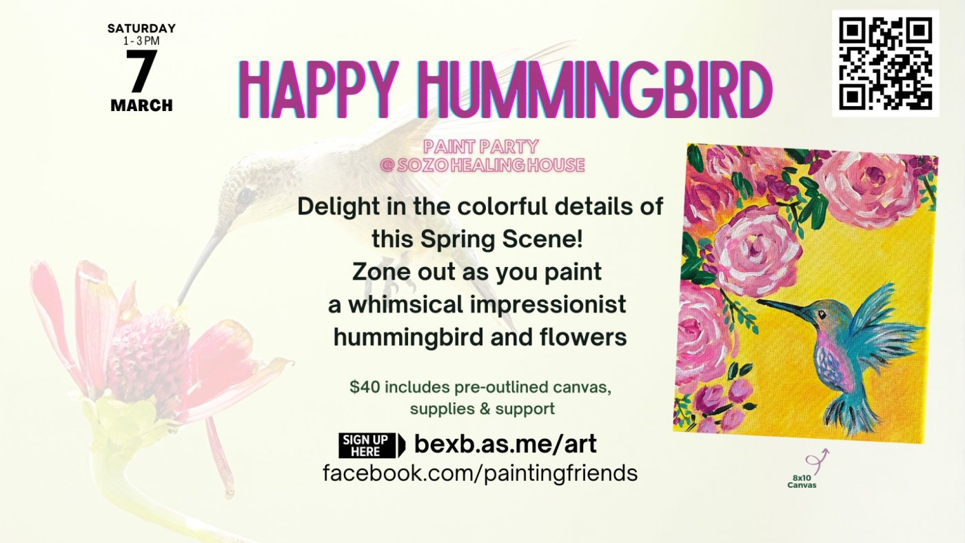 Zone out as you paint this whimsical impressionist hummingbird and flowers