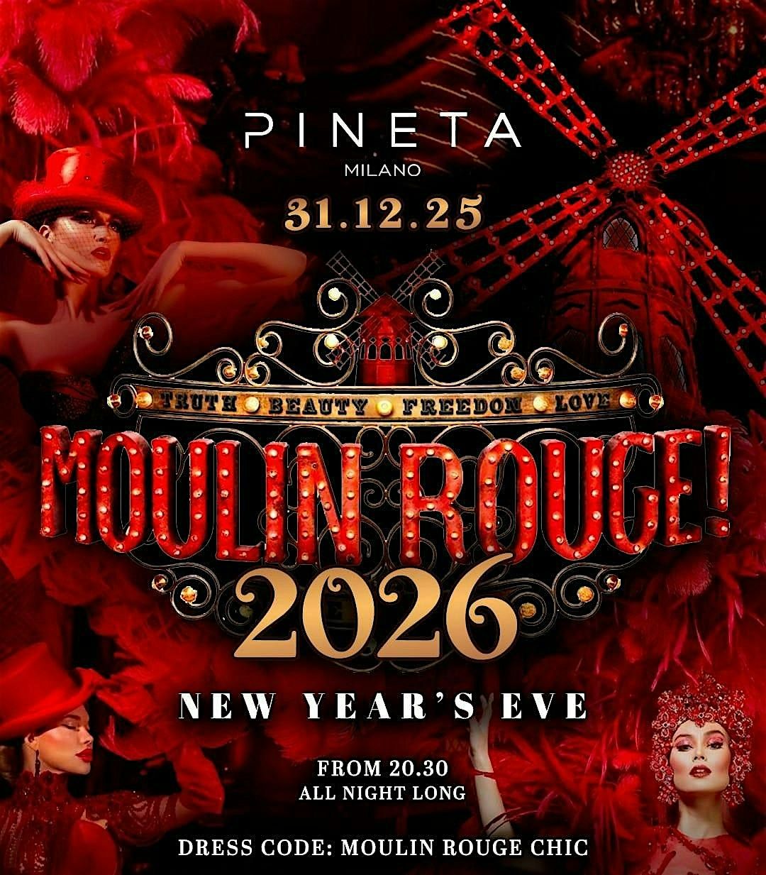 Benvenuti al Pineta Moulin Rouge, dove la notte di Capodanno diventa uno spettacolo.