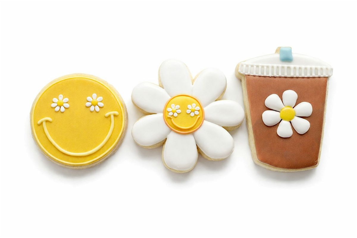 ✨ 3 pre-baked cookies (smiley, daisy, and coffee cup!)