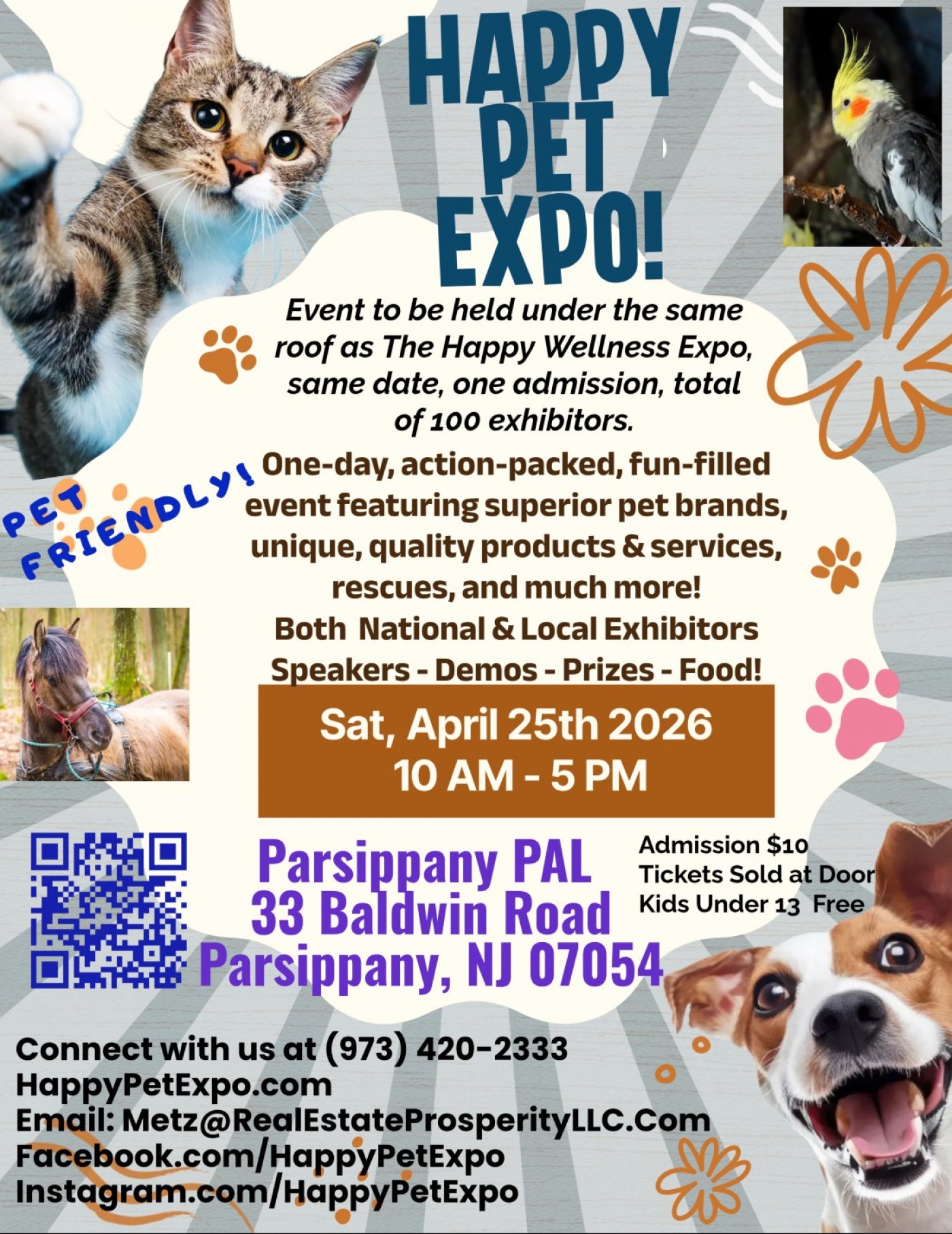 #HappyWellnessExpo #HappyPetExpo #PetFriendlyEvent #ParsippanyNJ #MorrisCountyNJ #NorthJerseyEvents #NJVendorOpportunities #WellnessExpo #PetExpo #HolisticHealth #Biohacking #NaturalWellness #PetWellness #LocalBusinessNJ #ParsippanyPAL #NJCommunityEvents
