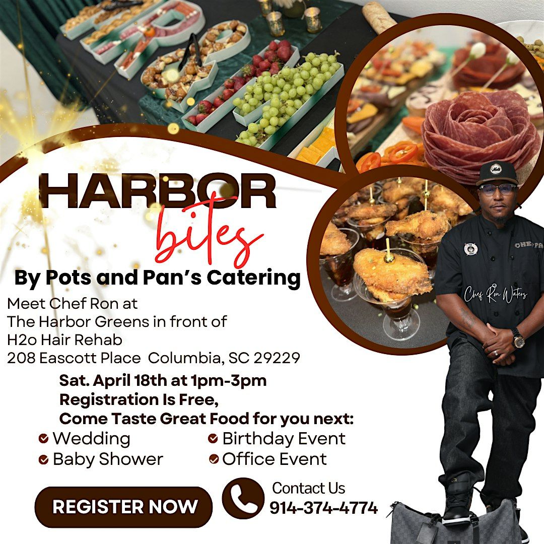 Harbor Bites by Pots & Pan’s Catering—taste signature dishes, meet Chef Ron, and plan your next event at Harbor Greens of Lake Carolina!Agenda
