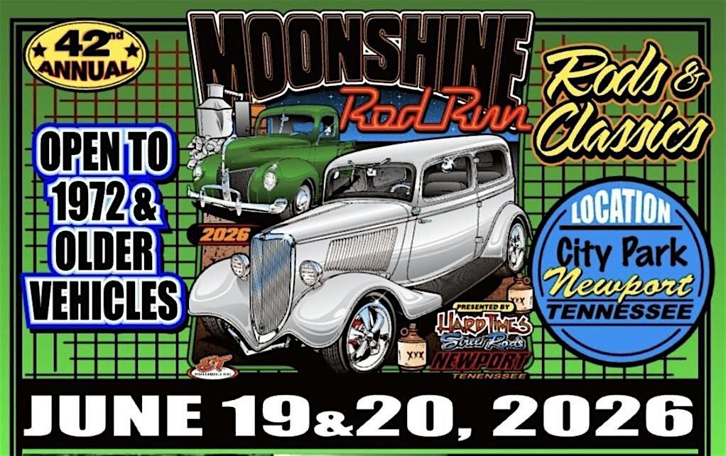 Come join us for the 42nd annual Moonshine Rod Run presented by Hard Times Street Rods at Newport City Park. Open to vehicles 1972 or older