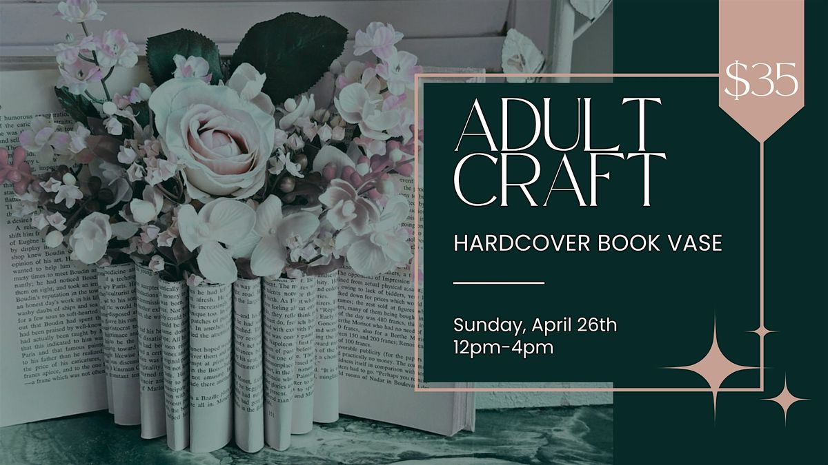 Get creative at our Hardcover Book Vase Craft Workshop! Transform a hardcover book into a charming vase filled with faux flowers. Bring your own hardcover book or select one from our shelves. All other materials for the floral arrangement will be provided.
