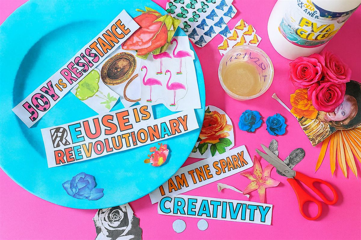 Each participant will receive a pre‑painted ceramic plate to decorate using collage materials and colourful marker pens. No previous experience is required — all materials are included, and the atmosphere will be fun, friendly, and relaxed. Upcycling turns everyday materials into stories worth sharing. Come play with us!
