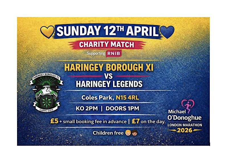 Come watch our charity football match where the LEGENDS of Haringey Borough will face off against a Haringey team mixed with current players and special guests