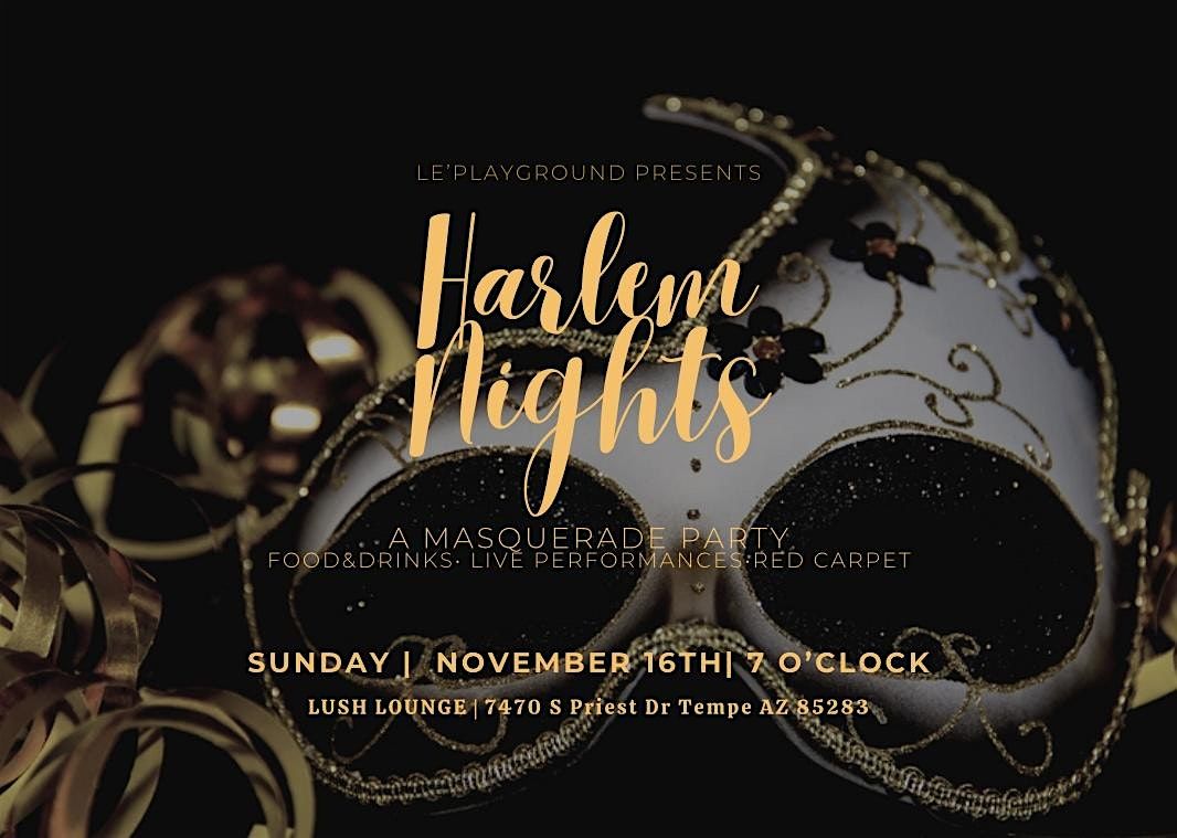 Come join us for a night of mystery and elegance at the Harlem Nights Masquerade! Put on your most fashionable mask and attire for an evening of music, dancing, and fun. This in-person event promises to transport you to the glamour of the roaring twenties in the heart of Harlem. Get ready to mingle with fellow guests, enjoy delicious refreshments, and dance the night away in style. Don't miss out on this unforgettable night of enchantment and sophistication!
