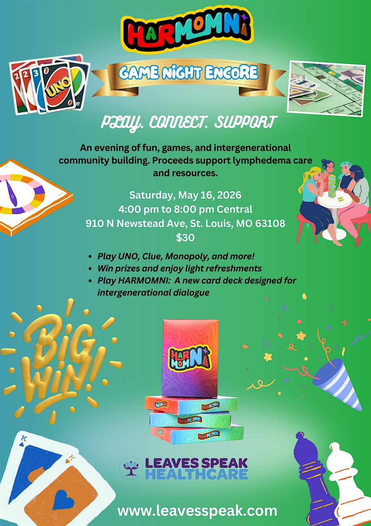 Join us for another HARMOMNI™ Game Night, an intergenerational community fundraiser for lymphedema awareness and support.