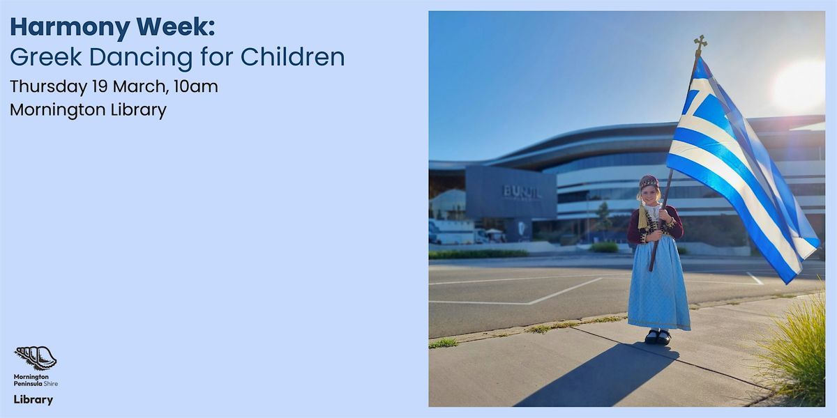 Celebrate Harmony Week and the introduction of our new Greek Storytime with this special Greek Dancing event. Led by the talented instructors from MANASIS School of Greek Dance and Culture, children will explore traditional movement, rhythm, and storytelling through dance.