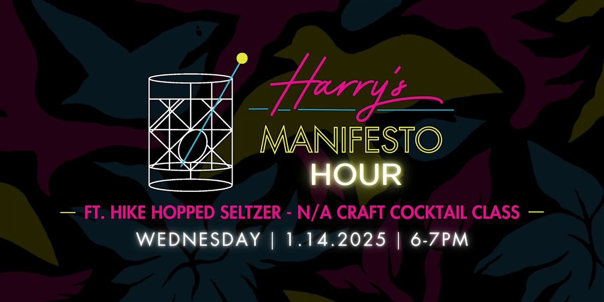 Experience how bright, flavorful, and creative N/A craft cocktails can be at this special edition of Manifesto Hour, featuring . This hands-on class walks guests through the process of building three N/A craft cocktails that showcase hop-forward character, balanced ingredients, and refreshing depth. Guests are welcome to order from the full bar and dinner menu throughout the session, creating a relaxed, social environment to sip, learn, and explore.