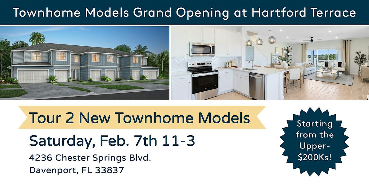 Join us on Saturday, February 7 from 11 AM to 3 PM for the Townhome Grand Opening at Hartford Terrace in Davenport. Tour our beautifully designed new townhomes, meet the sales team, and explore a low-maintenance lifestyle built for the way you live today.