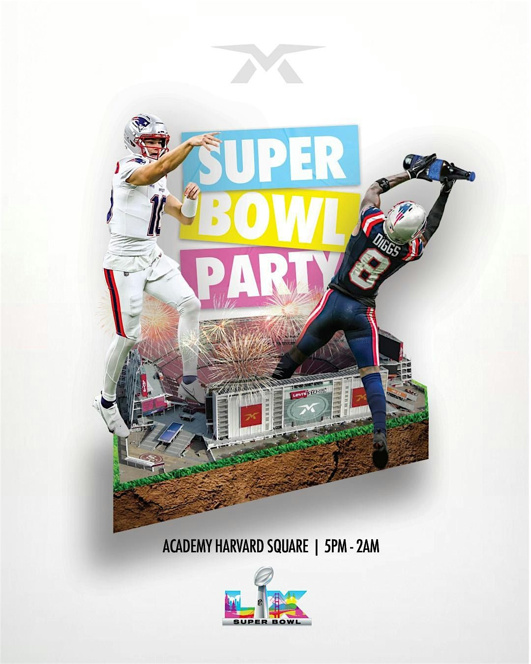 Super Bowl Watch Party at Academy Harvard Square! Cheer on the Pats with Harvard alumni, students, and the greater Boston Community!About this Event