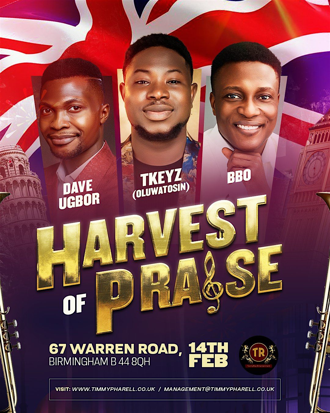 With gospel ministers TKEYZ, BBO, and Dave Ugbor, we gather to celebrate God’s goodness through powerful songs, uplifting praise, and an atmosphere filled with His presence.