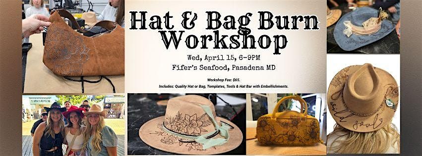 Join us for a creative night out at Fifer's Seafood and design your very own custom flat brim fedora, cowboy hat, or tote bag! You’ll use wood-burning tools, and embelishments to create a hat/tote that’s truly one-of-a-kind.