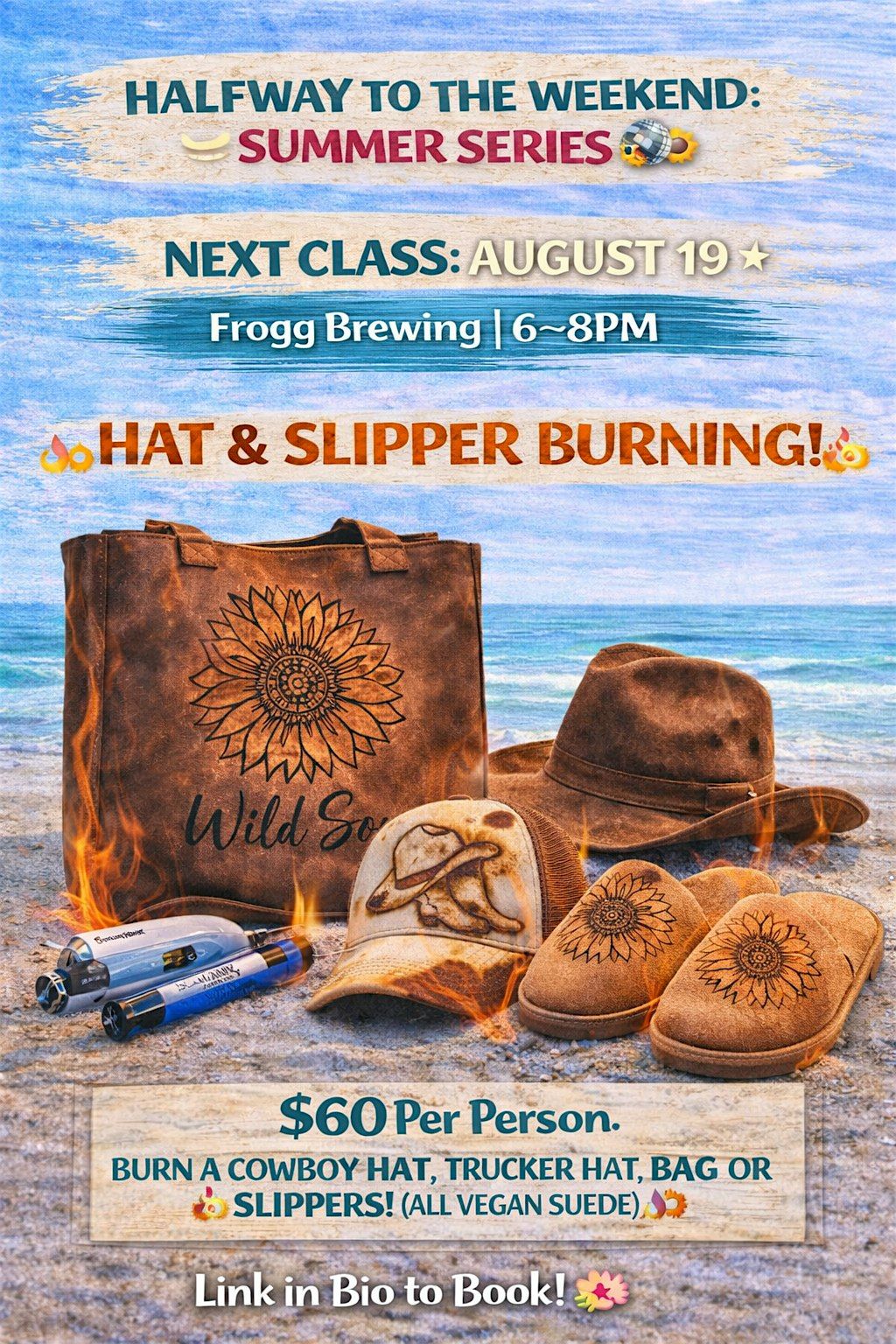 We’re burning custom designs into vegan suede hats, bags, and slippers — bold, edgy, and guaranteed compliments