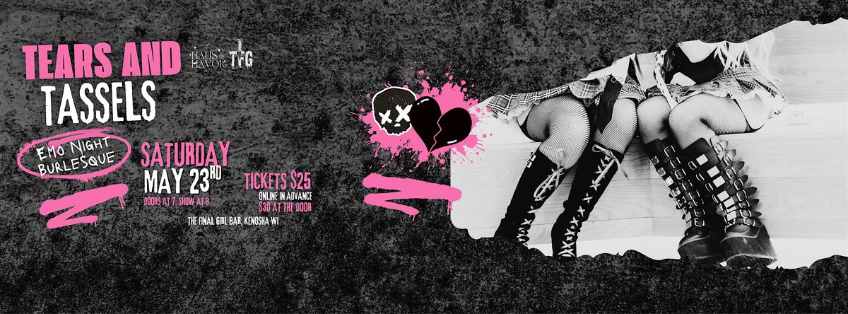 Welcome to Haus of Havok Presents: Tears and Tassels — where we swear to shake it up if you swear to listen. Grab your eyeliner and dollar bills and get ready for an unforgettable burlesque experience at The Final Girl on May 23, 2026 at 8:00 PM. Join us for an Emo Night like no other — it truly wasn't a phase, mom. Our performers nonconforming as can be as they dance dance to all the songs we all still know by heart. Embrace the nostalgia and join us as Haus of Havok once again takes over Kenosha's own slasher bar, The Final Girl, for an evening of equal parts tantalizing teases and "rawr xD". Sadness never looked so sexy.