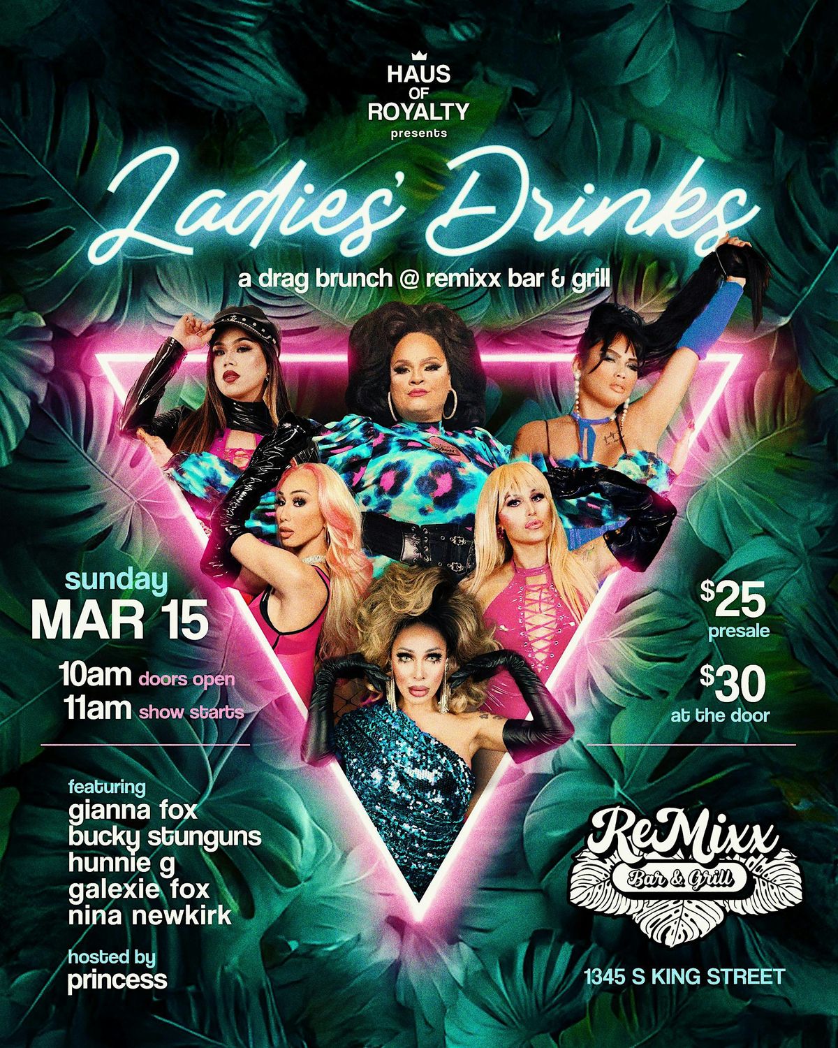 Come down to Remixx Bar & Grill (1345 South King Street) for Haus of Royalty's first drag brunch of 2026. We got the Westside's Royalty Princess, Firey Sisterz Gianna & Glaexie Fox, Hunnie G, Nina Newkirk & Bucky Stungunz gracing the stage!! There will be Drink & Food specials. Come on down as doors open at 10am and our show begins at 11am. Can't wait to see you there!!