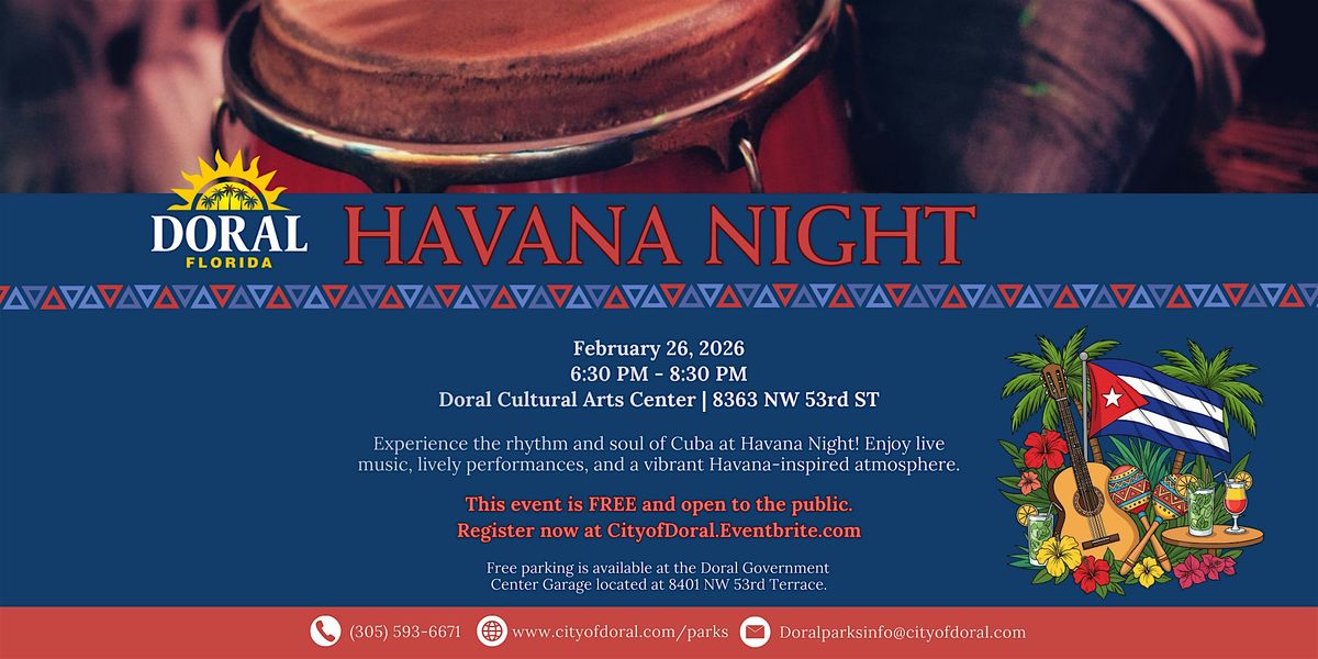Get ready for Havana Night, a vibrant experience under the stars! Enjoy an unforgettable evening filled with lively Cuban rhythms, energetic performances, and timeless sounds that celebrate the soul of Havana. Let the infectious beats and rich musical traditions set the mood for a festive and magical night.
