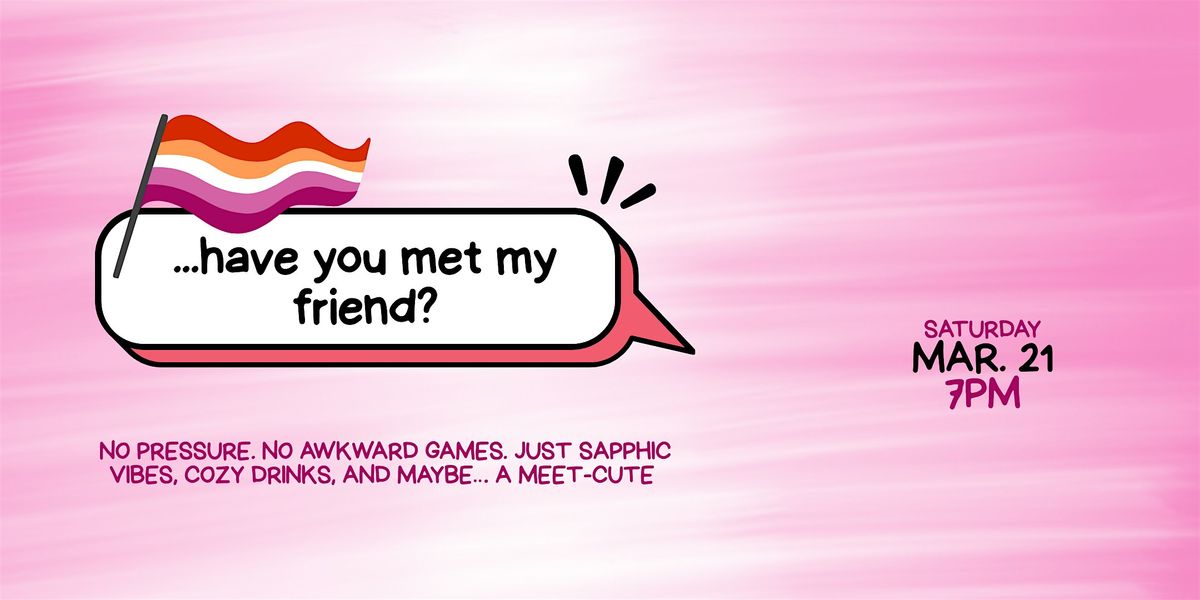 Join us Saturday, March 21st at 7pm for ...have you met my friend? The Sapphic Single Mingle, the social where you bring someone to hype you up, break the ice, and help you navigate the room.