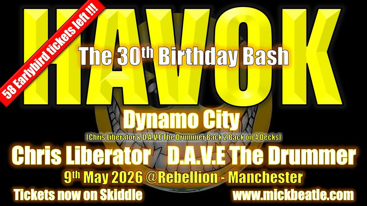 Mick Beatle and Medicine Man will bring to a close thirty years of repetitive beat madness as they host Havok’s 30th Birthday Bash, which will also be the final Havok event ever.