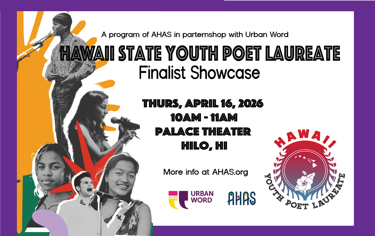 Join us for a special day celebrating Hawai‘i’s most talented young poets. The Hawai‘i State Youth Poet Laureate Finalist Showcase and Awards Ceremony features the top youth poets from across the state sharing their original work, followed by the announcement of the 2026 Youth Poet Laureate.