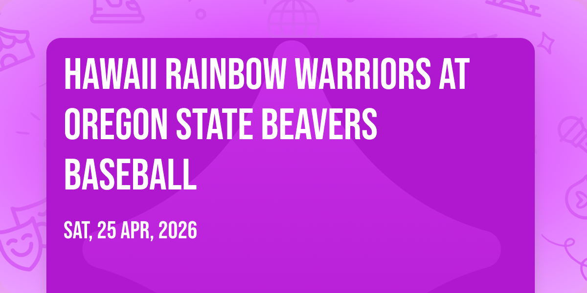 📍 Location: 44.5628, -123.277🌟 Be part of history at Hawaii Rainbow Warriors at Oregon State Beavers Baseball, an extraordinary gathering that will captivate your imagination! 🏛️ The prestigious Goss Stadium At Coleman Field in Corvallis, OR sets the stage for an unforgettable experience on April 26th, 2026 at 08:05 PM. ✨ They are bringing together the finest elements of entertainment and innovation to create moments that will take your breath away. From the moment you arrive, you'll be immersed in an atmosphere of wonder and excitement. 🎯 This carefully planned event ensures every guest experiences something truly special. 🎊 Early booking is recommended for this must-attend event of the season!