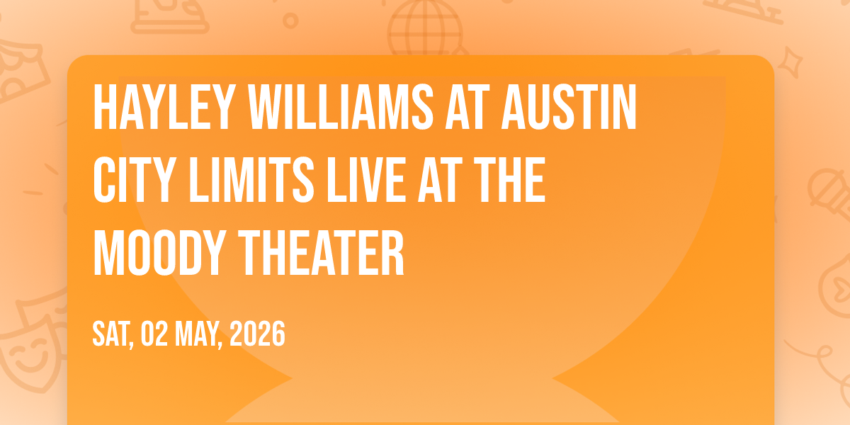 🌟 Step into a world of wonder at Hayley Williams at Austin City Limits Live at The Moody Theater, where extraordinary moments await! 🏛️ Located at Austin City Limits Live at The Moody Theater in dynamic Austin, TX, this event will become the talk of the town. 📅 Join us on May 2nd, 2026 at 07:00 PM for a celebration that defies the ordinary. ✨ This curated experience brings together the best of entertainment, culture, and community spirit. Every detail has been thoughtfully planned to ensure an unforgettable experience for all our guests. 🎯 Take advantage of this opportunity to be part of something special. 🎊 Early registration is recommended as space is limited!