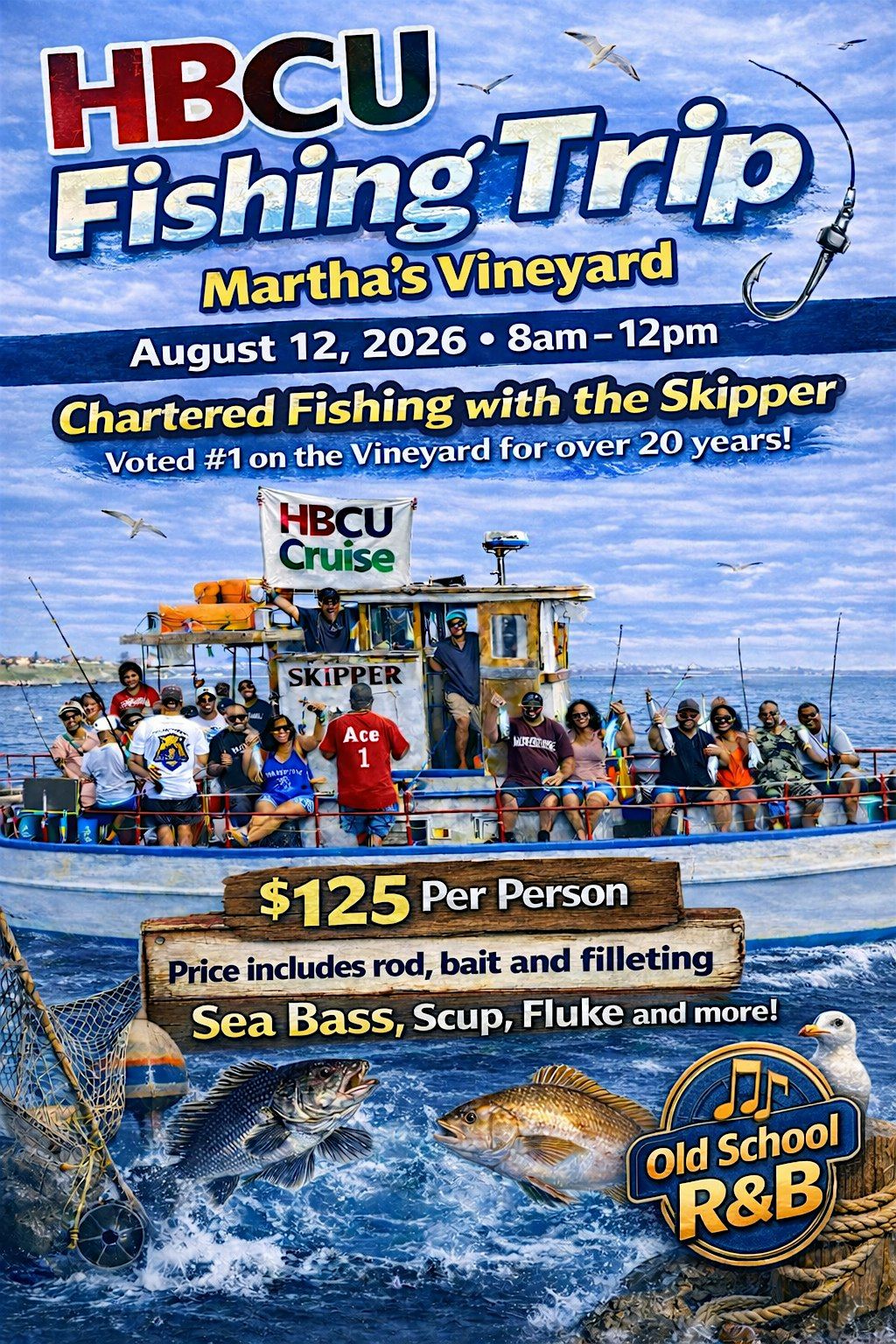 Join fellow HBCU alumni, D9 and friends for an unforgettable Chartered Fishing Trip on the beautiful waters of Martha’s Vineyard!