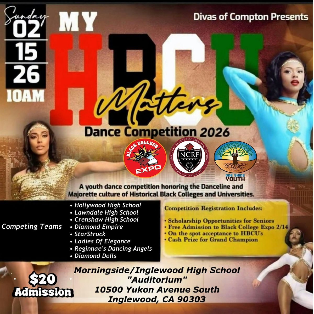 The HBCU Matters Dance Competition will be held on the campus of Morningside/Inglewood High School in the Auditorium.