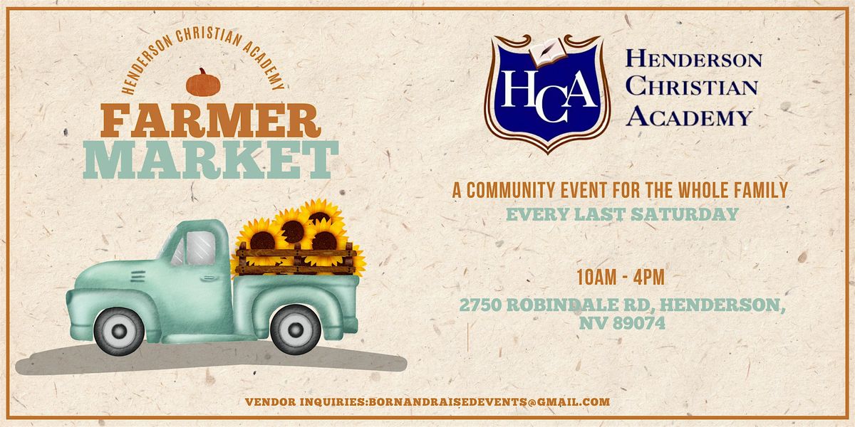 Welcome to the HCA Play & Shop Farmers Market! Join us for a vibrant community event filled with 40+ local vendors, family-friendly fun, and great finds for all ages. First 10 people in line will receive a tote bag with tons of deals.