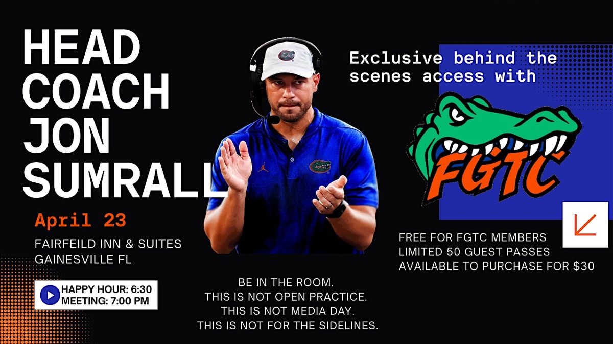 This is exclusive, behind-the-scenes access with Head Coach Jon Sumrall — available only through the Fightin’ Gator Touchdown Club.