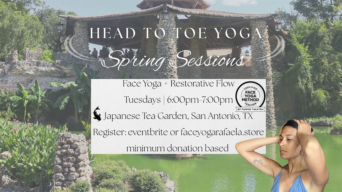 Join us for a rejuvenating evening of Face Yoga + Restorative Flow in the serene setting of the Japanese Tea Garden in San Antonio, TX.