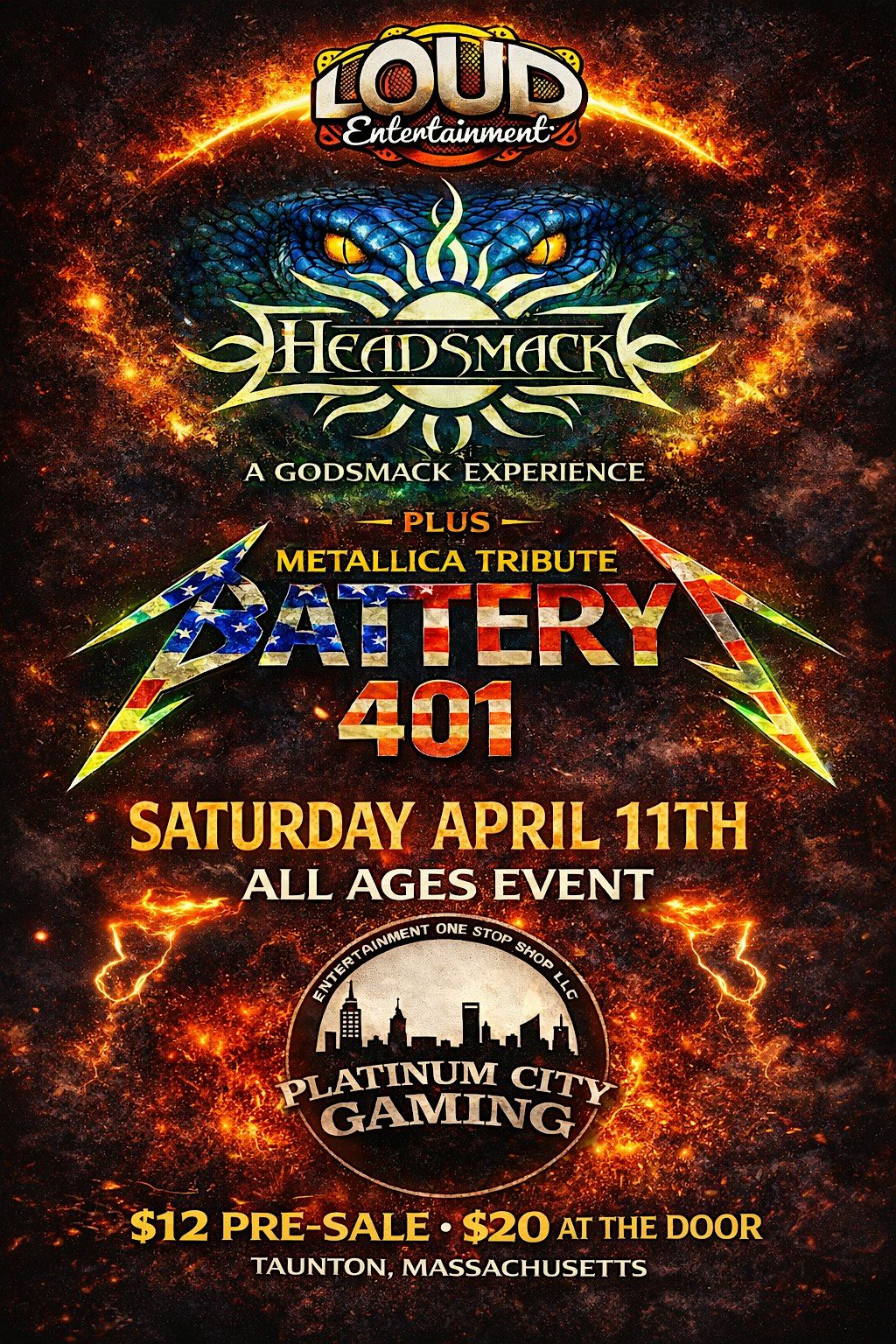 Join us for a night of heavy metal tribute like no other! Experience the raw power and energy of your favorite metal legends performed live by Headsmack & Battery 401. Come headbang, rock out, and have an unforgettable night with fellow metalheads. Don't miss out on this epic tribute night – it’s gonna be LOUD, intense, and straight-up metal!