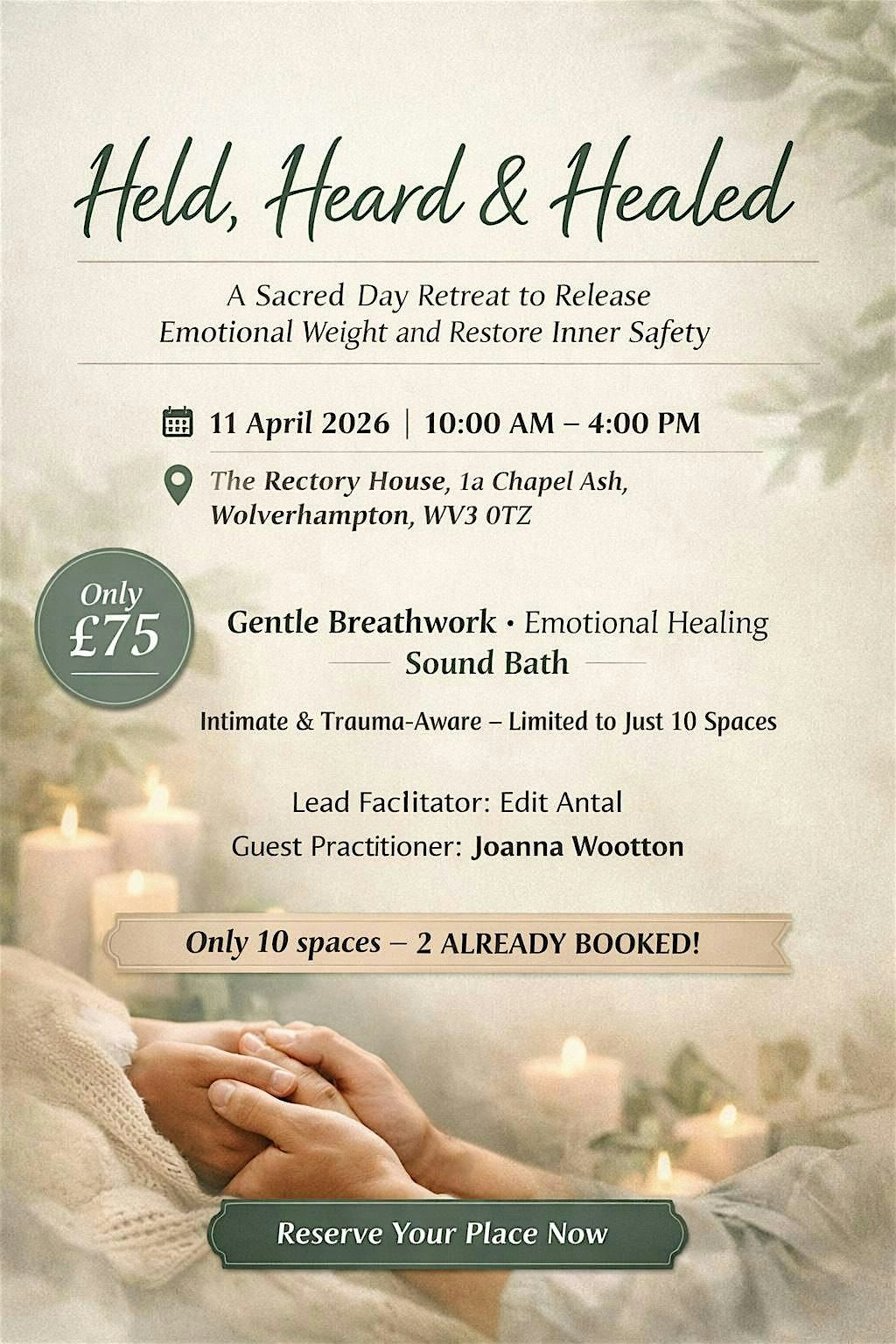 Held, Heard & Healed is an intimate, trauma-aware day retreat designed to gently guide your nervous system out of survival mode and back into safety, softness, and presence.