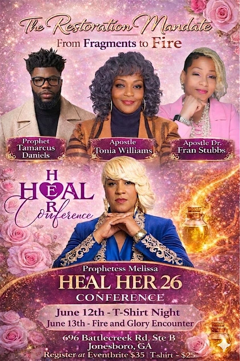 Get ready to join an in-person experience that’s all about healing, growth, and transformation! "Heal Her 26" is your chance to reconnect, rebuild, and reignite your inner fire. Expect inspiring moments, powerful connections, and a vibe that moves from broken pieces to bold passion. Don’t miss out on this uplifting journey—come as you are and leave renewed!