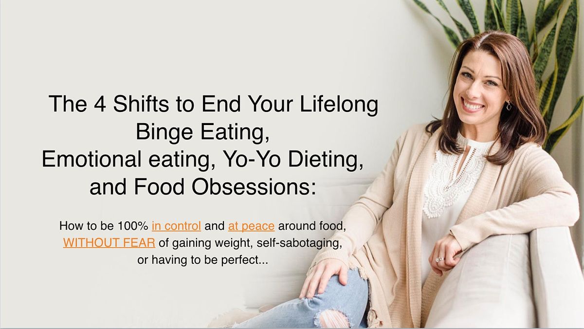 This FREE ONLINE EVENT is for anyone who feels out of control with food and who struggles with binge eating, overeating, emotional eating, food obsessions, yo-yo dieting, or a former eating disorder.