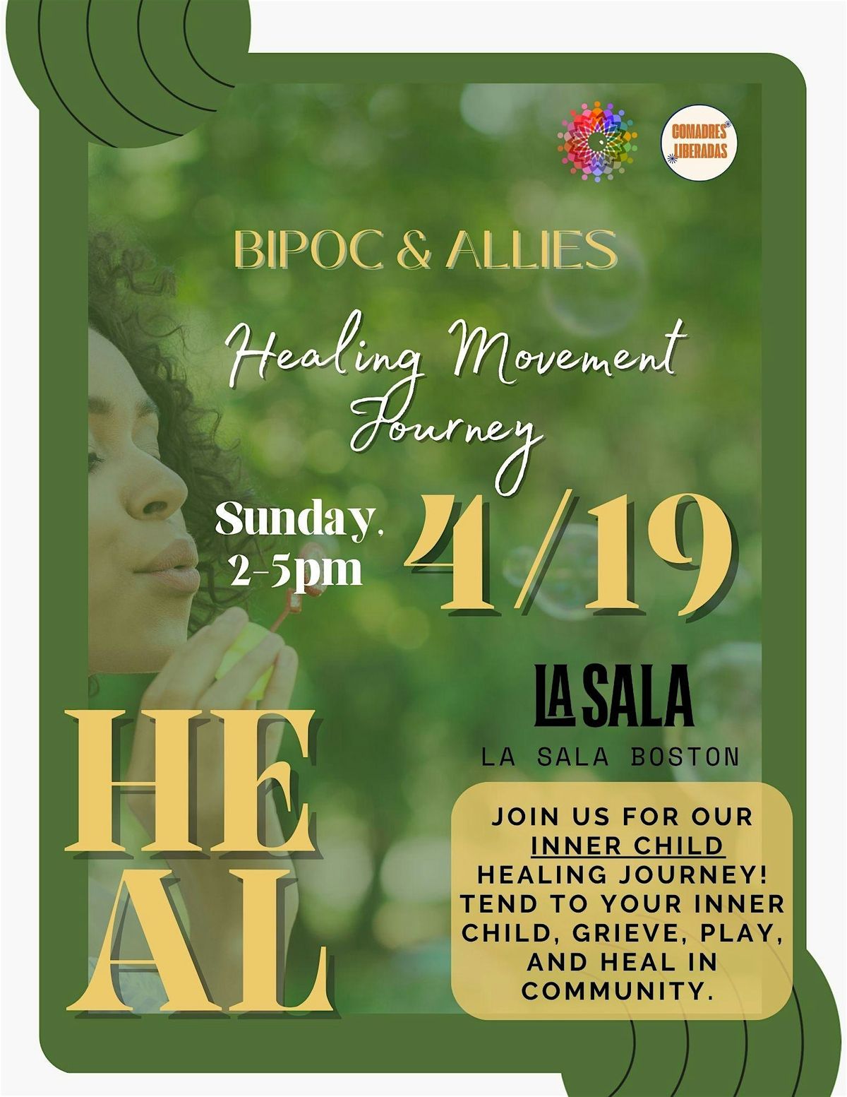 Join us on Sunday, April 19 from 2-5pm at La Sala in Boston for a 3-Hour Healing Movement Journey for BIPOC Women, Allies and Gender-Non-Confirming people. In this workshop, we are connecting with our inner child to heal, grieve and play in community.