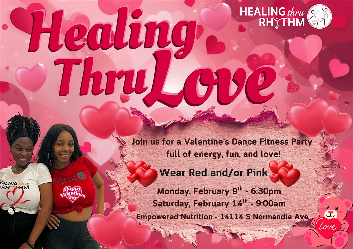 Dance, sweat, and celebrate love with our Healing Thru “Love” dance class. Show your style in red, pink, or white.