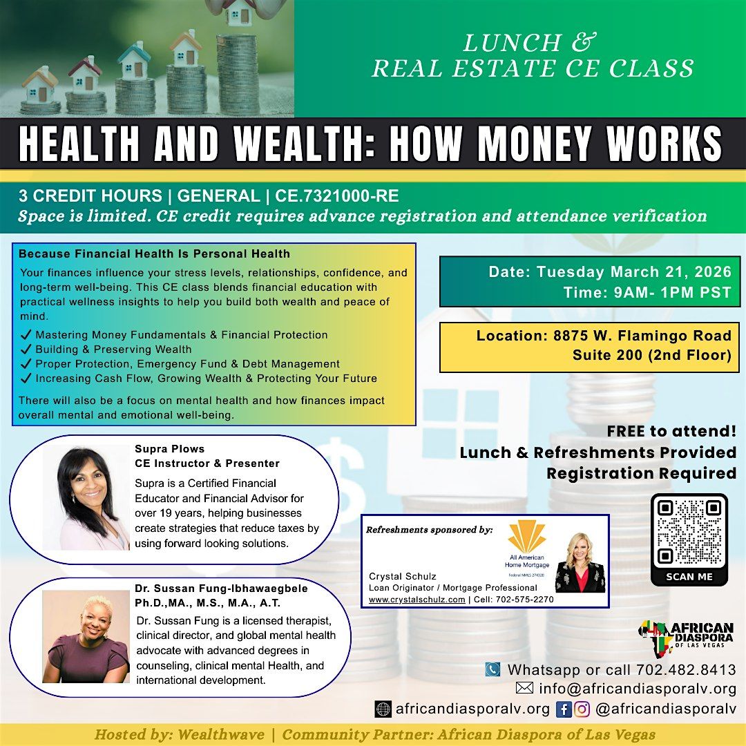 Your finances influence your stress levels, relationships, confidence, and long-term well-being. This CE class blends financial education with practical wellness insights to help you build both wealth and peace of mind.