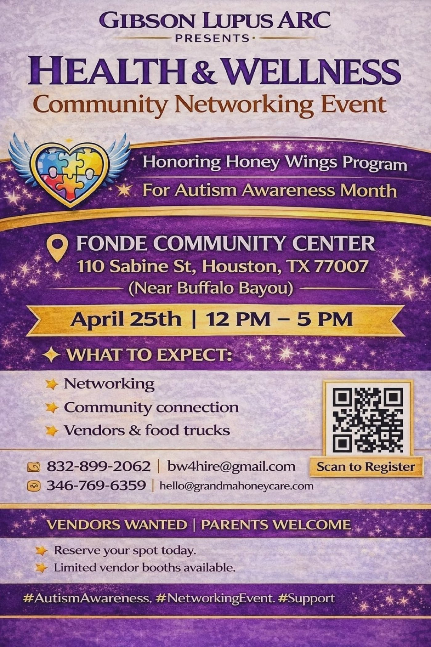 Gibson Lupus ARC is committed to supporting families, empowering communities, and creating intentional spaces for connection, growth, and collaboration. This event also serves to uplift and honor the Honey Wings Program and bring awareness to Autism within our community.