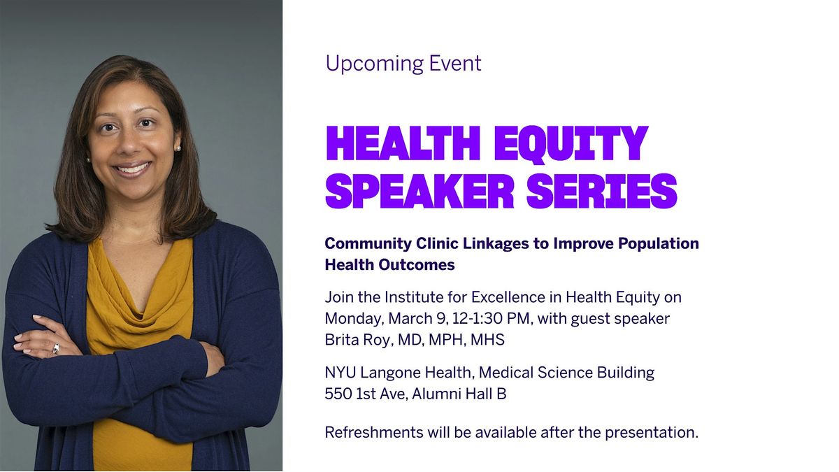 Info: Brita Roy, MD, MPH, MHS is Associate Professor of Population Health and Medicine, Community-Clinic Linkage Research Pillar Lead for the Institute for Excellence in Health Equity, and the Director of Community Health & Clinical Outcomes for NYU Langone Hospital—Brooklyn. Dr. Roy is a general internist with an engineering background whose research uniquely employs systems science to optimize health outcomes for all. She applies a preventive, community-based approach, implementing interventions that aim to create conditions that foster health and well-being for all.