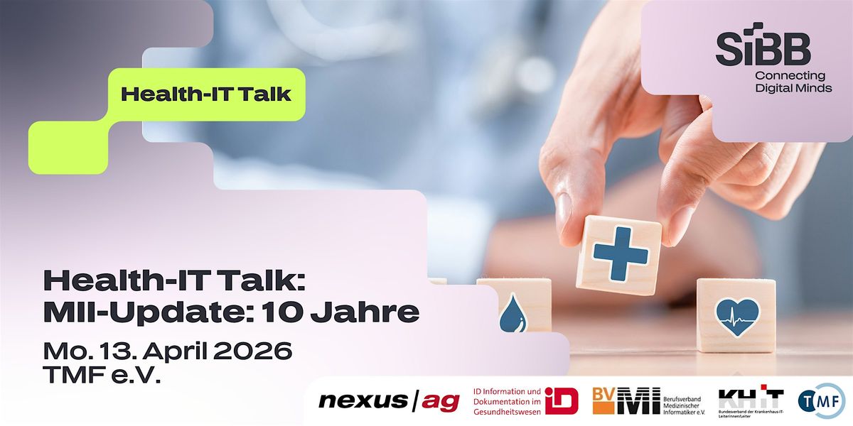 Mit der Anmeldung zu der Veranstaltung des Health- IT Talk willigen Sie ein, dass Fotos oder auch Videos die auf dieser Veranstaltung gemacht werden und Sie abbilden, durch SIBB e.V. , BVMI und KH-IT unter Namensnennung vervielfältigt, verbreitet, gesendet und öffentlich zugänglich gemacht werden dürfen. Diese Lizenz wird unentgeltlich eingeräumt.