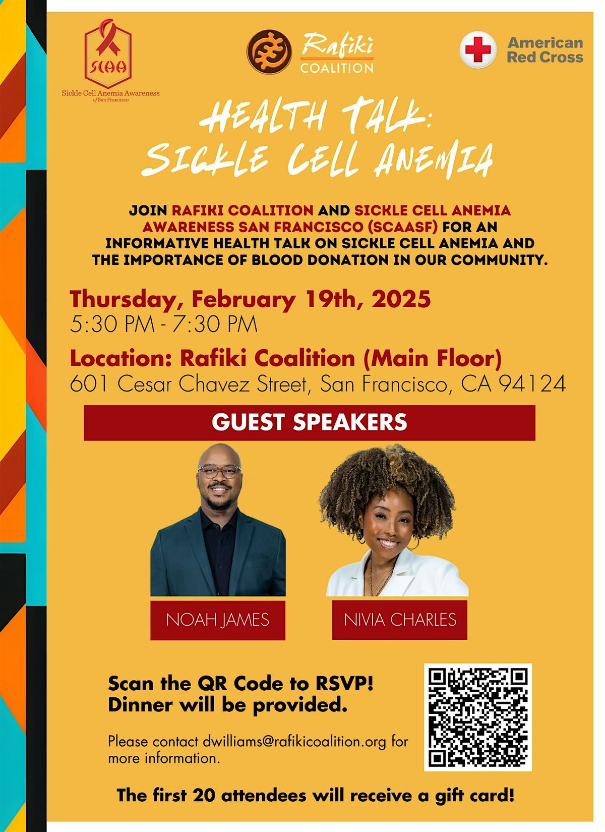 Join Rafiki Coalition and Sickle Cell Anemia Awareness San Francisco (SCAASF) for an informative health talk on sickle cell anemia.