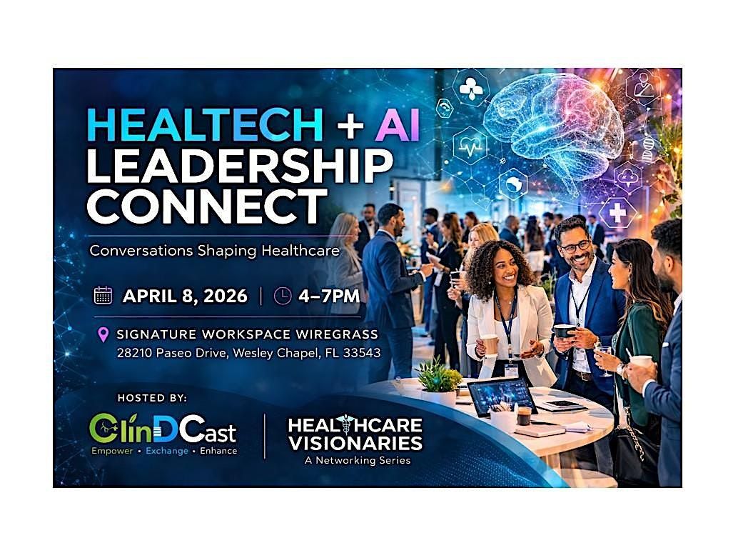 Hosted by Anita Nayak, Founder & CEO of ClinDCast, the Healthcare + AI Leadership Connect brings together healthcare executives, hospital innovators, digital health entrepreneurs, and AI leaders for an engaging conversation and networking experience during Tampa Bay Tech Week.