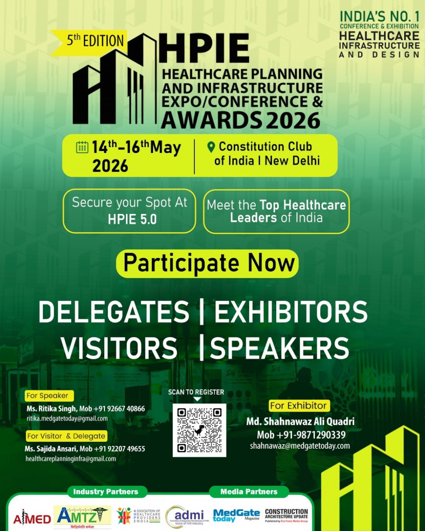 India, with a population of over 1.4 billion, is on an accelerated path toward becoming a Viksit Bharat by 2047. While healthcare coverage and policy reforms have expanded significantly in recent years, infrastructure gaps remain a critical challenge. India currently has an estimated 1.3–1.5 hospital beds per 1,000 population, compared to the global average of nearly 3 beds per 1,000, indicating the need for millions of additional beds, modernized facilities, and stronger rural urban distribution to meet future demand. Simultaneously, evolving disease patterns, rising non-communicable diseases, climate risks, and public health emergencies demand infrastructure that is not just expanded - but intelligent, sustainable, and resilient. HPIE (Healthcare Planning & Infrastructure Exhibition, Conference & Awards) 2026, now in its 5th edition, is a premier national platform uniting policymakers, architects, hospital owners, infrastructure companies, technology leaders, and healthcare administrators under the theme HPIE 2026: Building AI-Enabled, Sustainable & Resilient Healthcare Infrastructure for India@2047 to address these pressing challenges.
