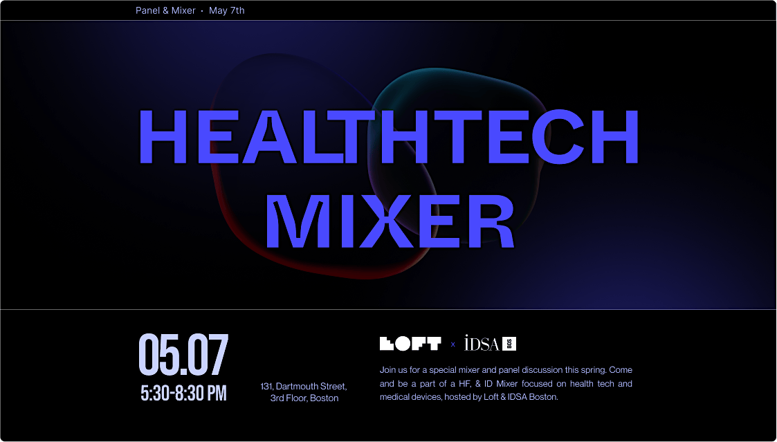 Come and be a part of a Human factors ID & UX Mixer focused on HealthTech and medical devices, hosted by Loft Design, and the IDSA Boston Chapter.