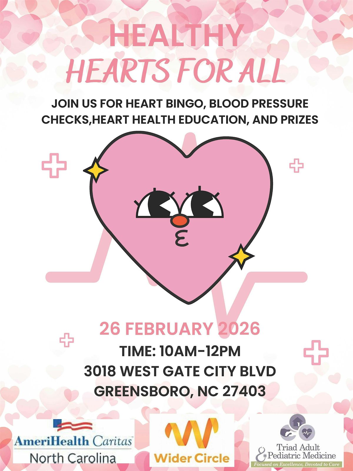 Come join AmeriHealth Caritas NC, Wider Circle, and Triad Adult & Pediatric Medicine as we hang out in person for a fun and friendly event focused on healthy living and heart wellness. Whether you’re looking to learn new tips, meet cool people, or just get inspired, this is the place to be. We will have: