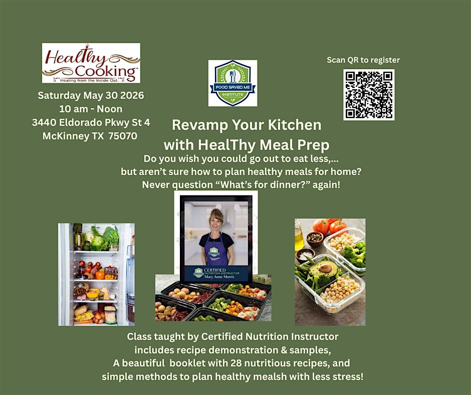 Join Mary Anne, a certified Nutritionist, as she teaches our award-winning strategy on meal prepping! Learn how to put meals together and how to pair different recipes so you always have variety! You'll never be bored of eating the same old foods again. Class includes nutrition information, 4 weeks of meal plans and recipes, plus delicious food samples!