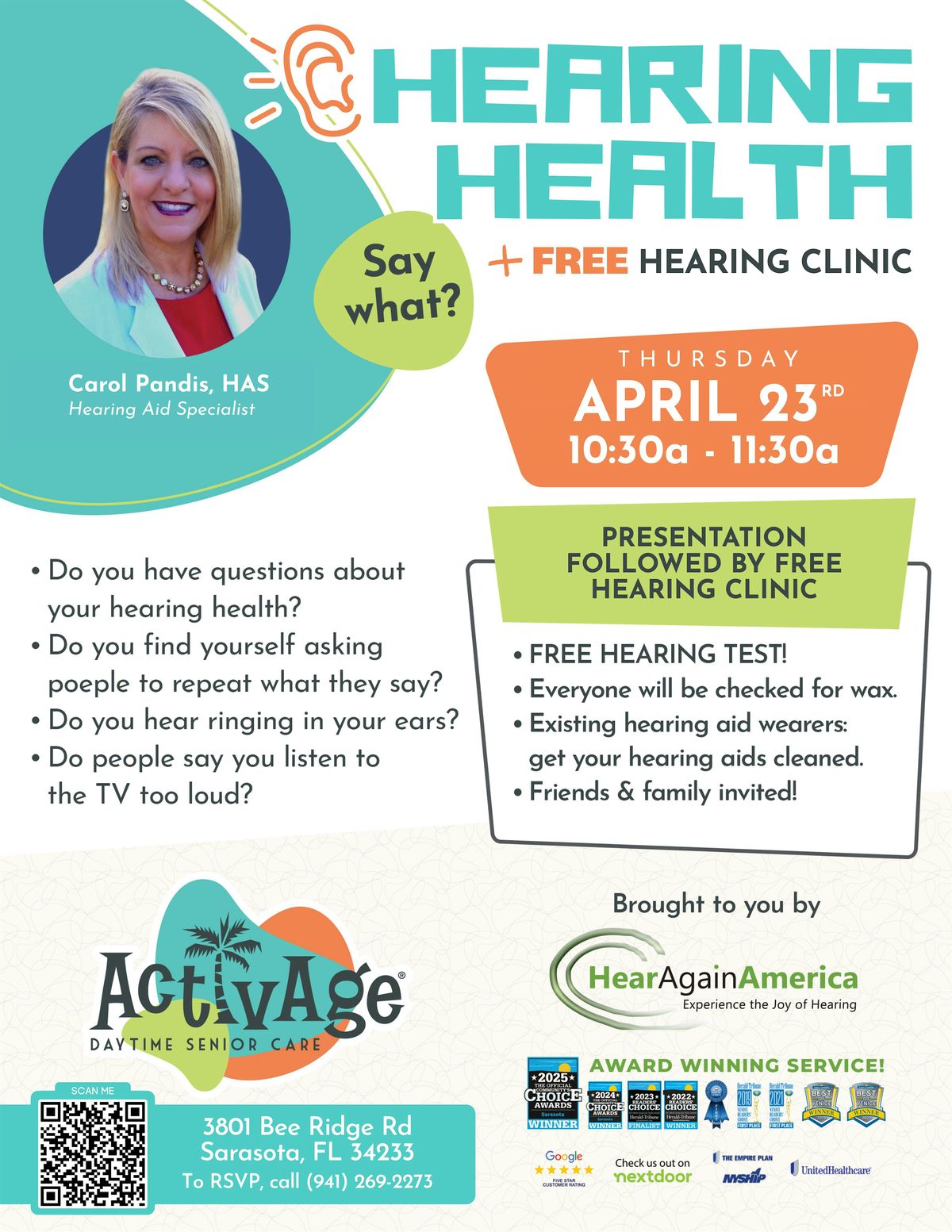 Join us for a Hearing Health Presentation + Free Hearing Clinic designed to bring awareness, answers, and support to those wondering if their hearing has changed.